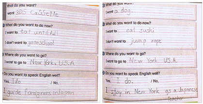 助動詞、一般動詞、感嘆文、疑問詞、There is/are、不規則名詞の単複、前置詞、不定詞、比較、進行形等の文法も学び、短いストーリーの文章全体を「読み」「書く」力を鍛えていきます。
