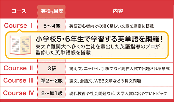 CourseⅠのトレーニングを通して、小学生で理解したい600~700語を網羅することが可能です。